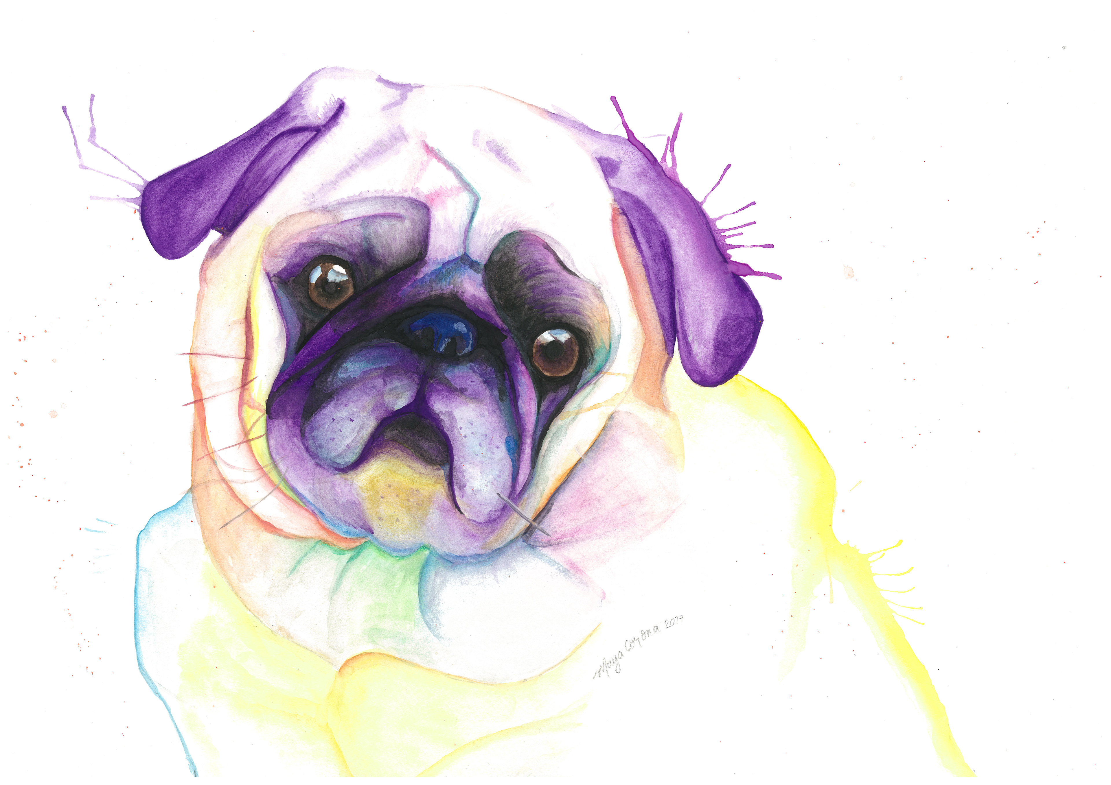 Chloe (The Pug) Watercolour 12x18 inches on 140 Lb. paper